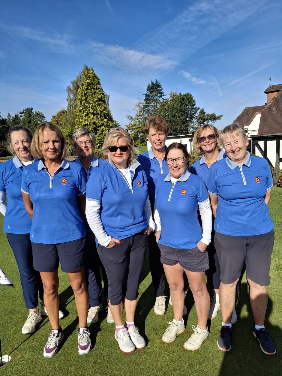 On Sunday 28th September, eight of our strongest senior county women headed north to compete in the Midland Senior Women’s Team Championships. Arriving at Trentham Golf Club we were welcomed by clear skies and very helpful staff / club members. All players made good use of the practice round to note sight lines, club selection and discuss on course strategy. Having completed our match preparations, thoughts turned towards Team Europe and the Ryder Cup. Having checked-in at the hotel in record time we managed to secure an alcove at the local Harvester to witness events unfold in Bethpage.