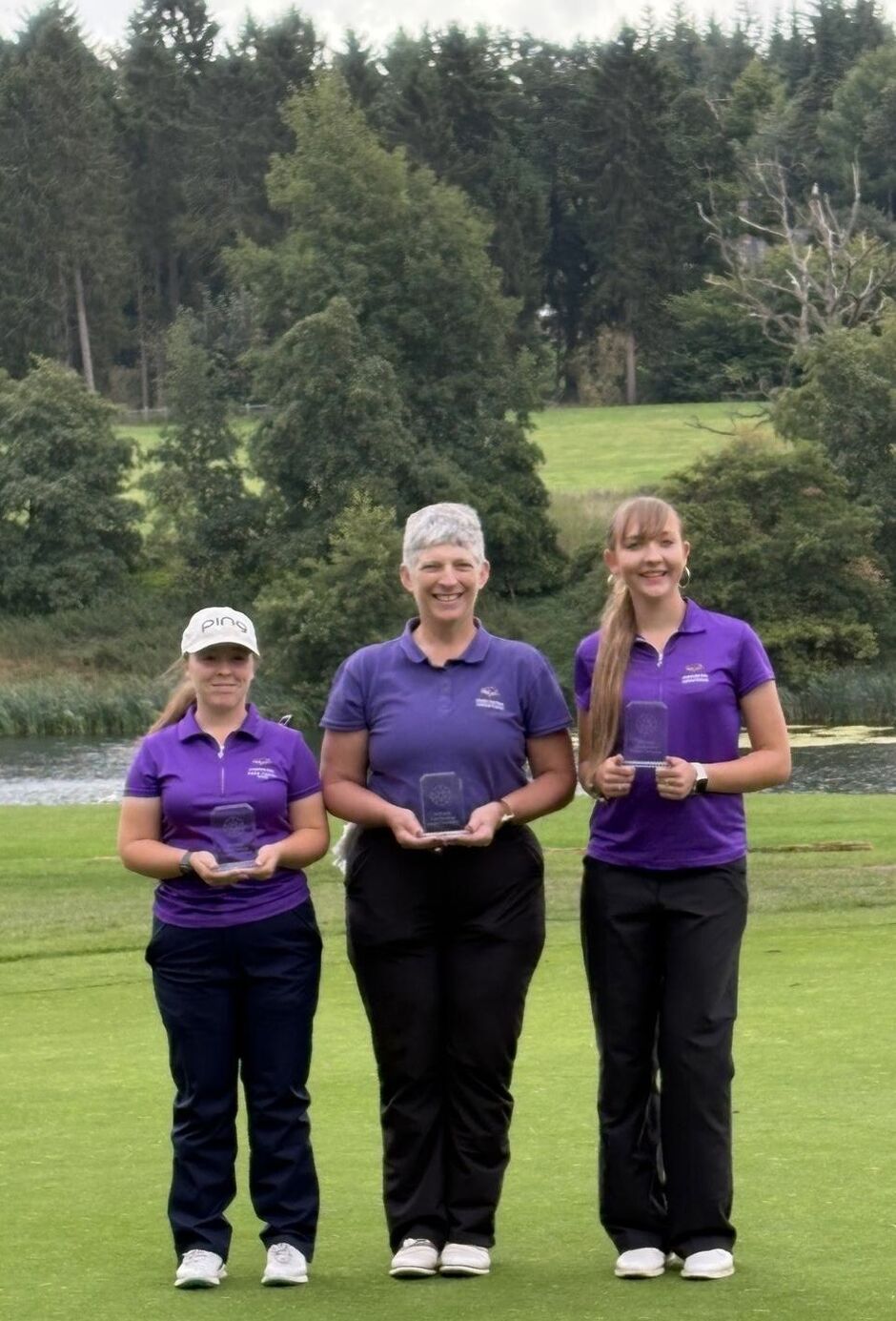 Overstone Park Jen Kyle, Clair Hunter and Freya Pickford members of the winning team for the women's low handicap singles league.